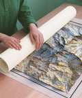 Text on the map can be difficult to read, for several reasons. Technique used to create 3D effect can covering some of the text and also due font size. In particular it can be hard to read maps' legend with small print size, it will be visible but a magnifying glass might be needed to read the legend text. So if you want to be able to read text we recommend to order a larger print to ensure a better readability.